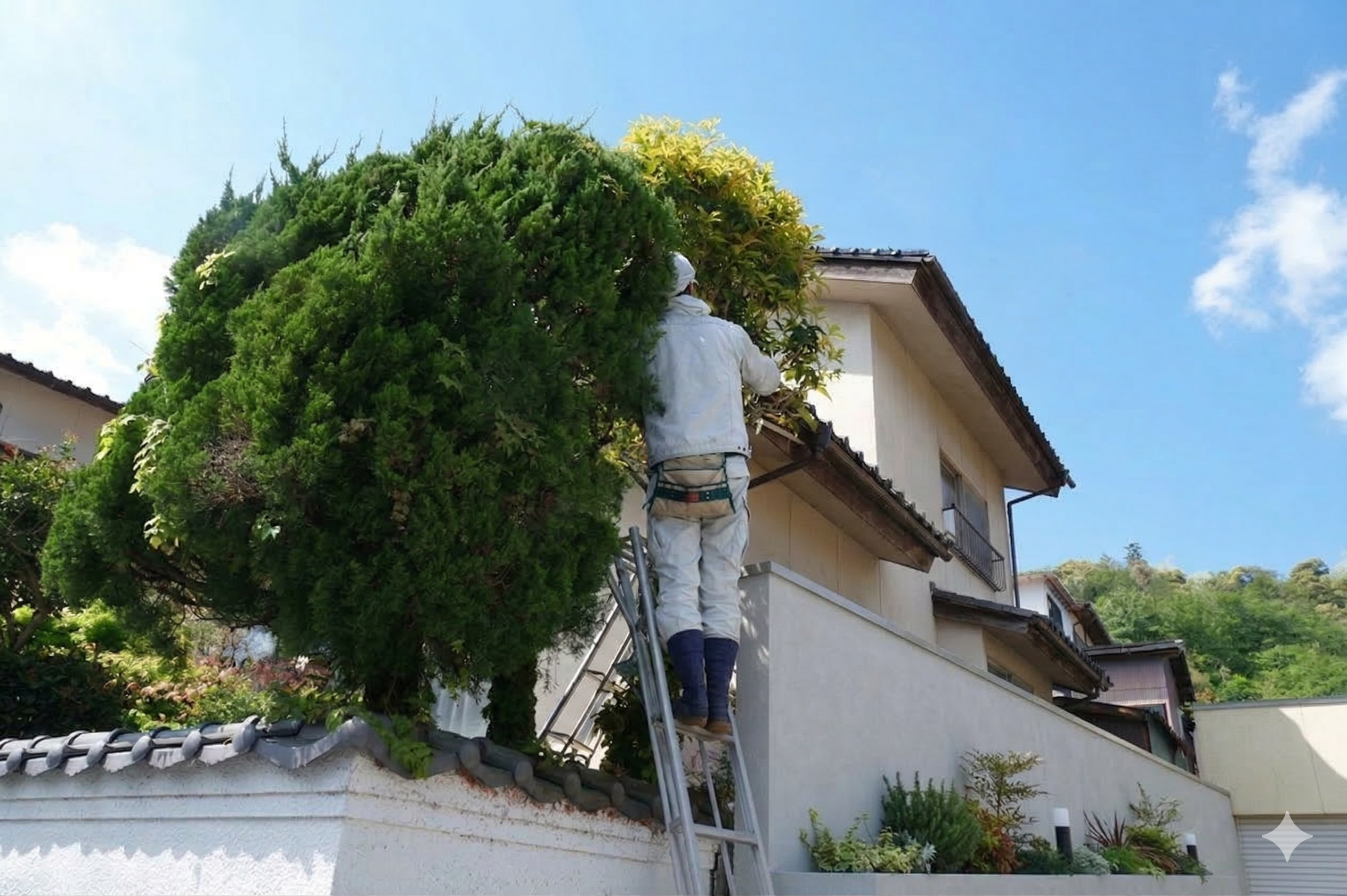 伐採作業は、高所での作業や重量物の取り扱い、近隣建物への影響など、緻密な計画と高度な技術が不可欠。長年培ってきた経験をもとに、狭小地での作業や倒木の恐れがある巨木にも柔軟に対応し、迅速かつ安全な土地の再生に貢献しています。